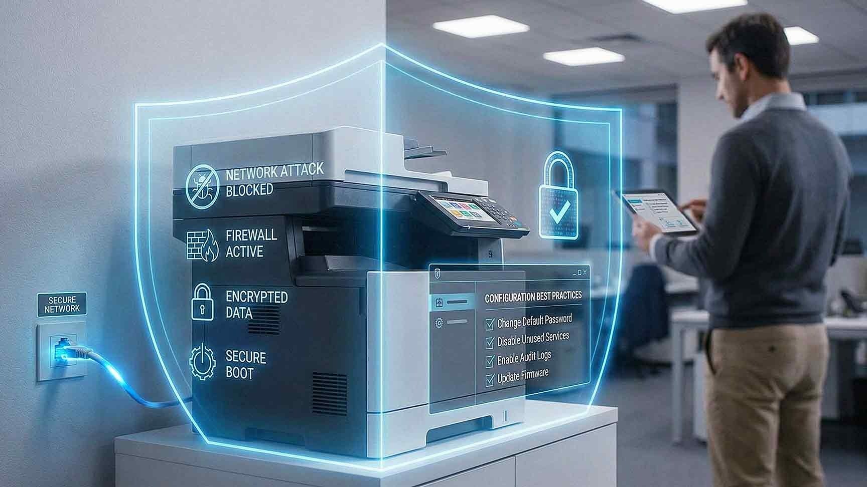 Multifunction printers operate as protected endpoints, not hidden vulnerabilities.